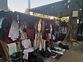 Вече трето лято след построяването на новата сцена съблекални няма. Участниците в различните концерти, фестивали, културни и спортни изяви обличат и сменят костюми… кой където намери. Някои от по-опитните си спомнят, че до старата сцена можеха да ползват входа и стълбището на сградата на ЦКБ – крайно неудобен, но все пак съществуващ вариант. Сега няма дори такъв. За някои от по-мащабните прояви зад новата сцена (върху това, което трябва да са зелени площи, но отдавна не са!) от общината слагат преместваеми шатри и столове. Това осигурява минимален комфорт за участниците – могат да оставят костюмите си върху столовете, но проблемите с обличането и преобличането си остават. Да не говорим за гримьорна (или тоалетна!), която на този етап изглежда като лукс, който дори не подлежи на обсъждане.